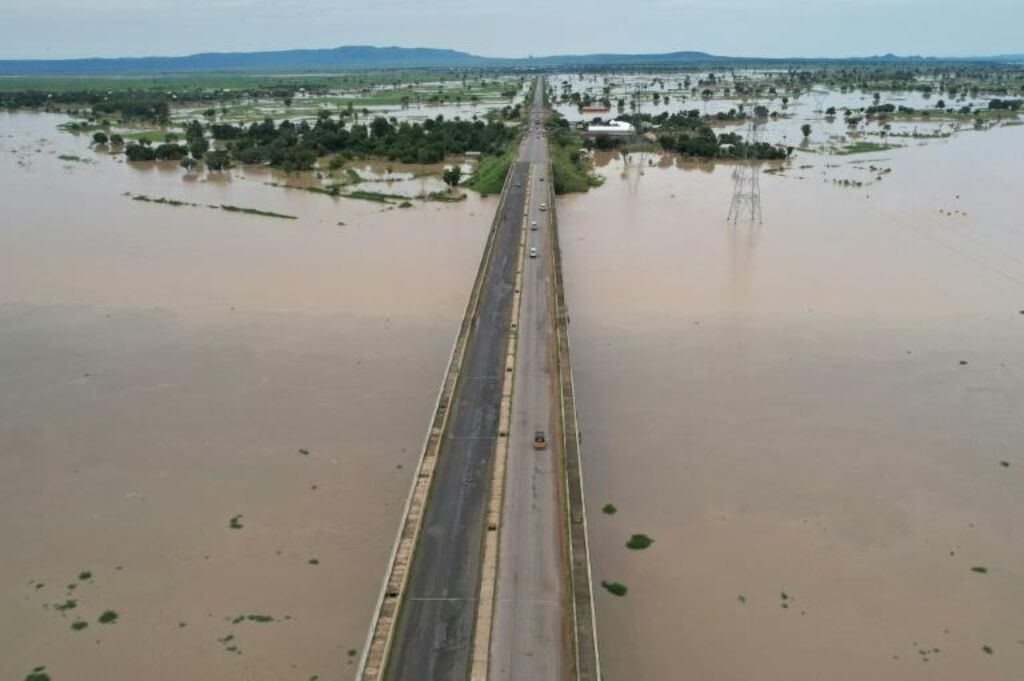 | Vue aérienne du pont Numan et des inondations dans l'État de l'Adamawa, le 25 septembre dans le Nord-Est du Nigeria. |