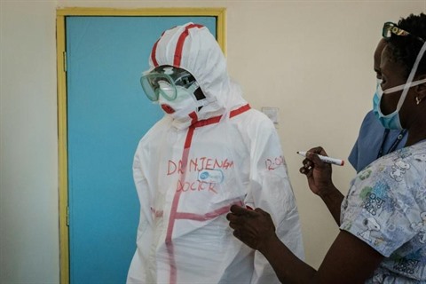 | Un docteur se prépare avec son équipement personnel de protection à l'hôpital Kenyatta de Nairobi, le 15 mars. |