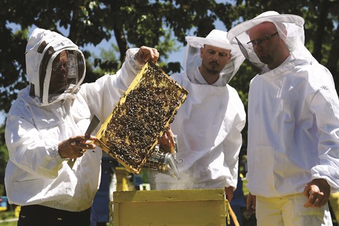Les abeilles vibrionnent autour des rangées de ruches multicolores de la ferme "Morava" dans un ballet incessant entre l’abreuvoir où elles se ravitaillent en eau et le nectar collecté aux fleurs alentours. Devant l’entrée de chaque ruche, les "gardiennes" veillent à ne pas laisser entrer d’intruses d’autres colonies.
