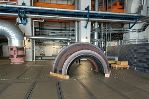 | Un morceau de turbine démantelée à la centrale à charbon de Moorburg à Hambourg (Nord), le 25 août. |