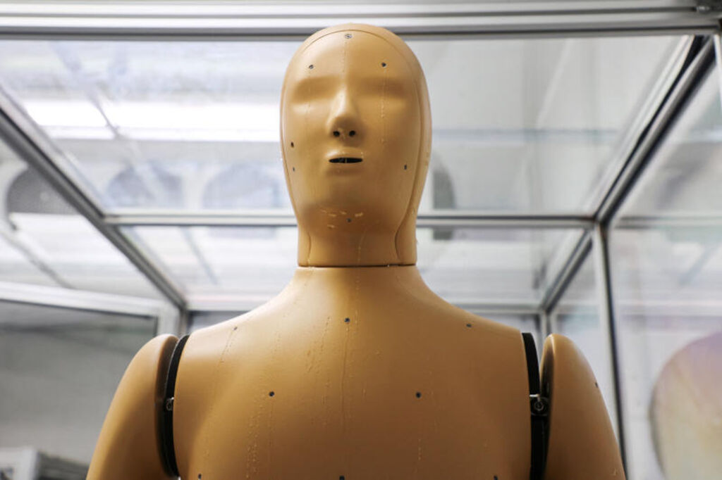 Son allure simple de mannequin pour crash-test masque des trésors de technologie. Sous son épiderme en fibre de carbone époxy, un réseau de capteurs connectés évalue la chaleur qui se diffuse dans le corps.