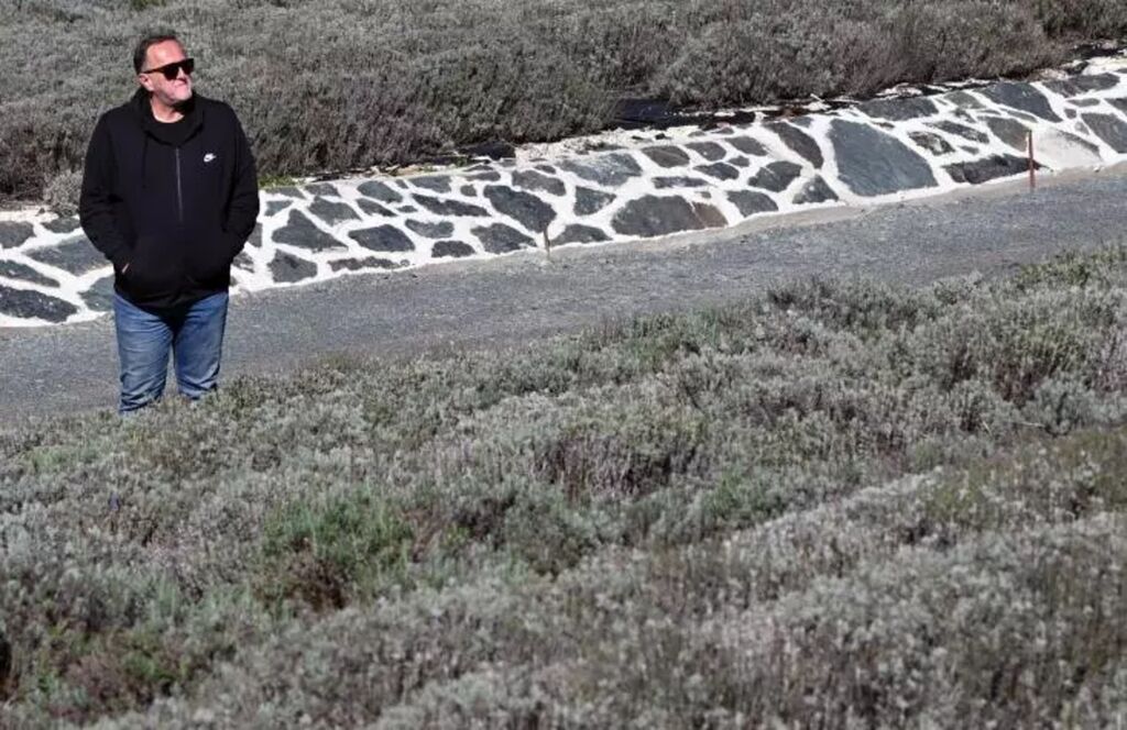 Derrière lui, des dizaines de milliers d'arbustes de lavande, d'herbes et de plantes forment tourbillons et spirales qui, vus du ciel, rappellent indubitablement la configuration céleste peinte en 1889 par l'artiste post-impressionniste néerlandais.