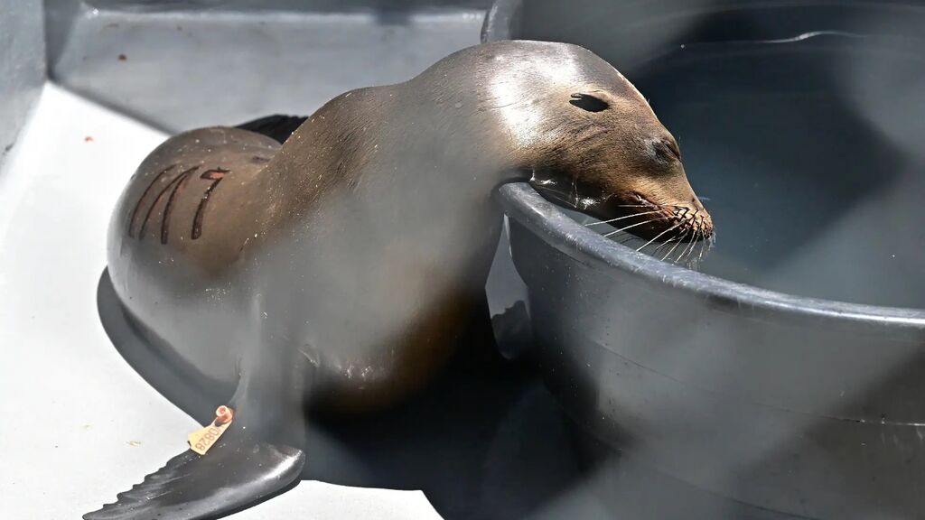 | Une otarie se désaltère à l’Institut de la vie marine des îles Channel à Gaviota, en Californie. |