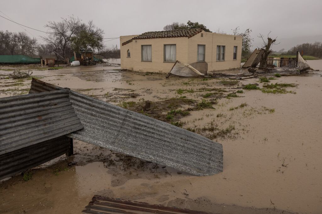 | Une maison inondée dans l'eau suite au passage d'une tempête à Chualar, en Californie, le 14 janvier. |