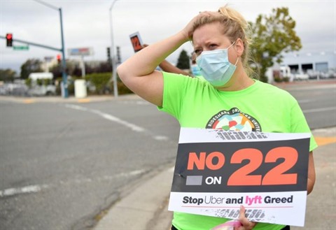 | Manifestation contre la Proposition 22 à Los Angeles, le 22 octobre. |