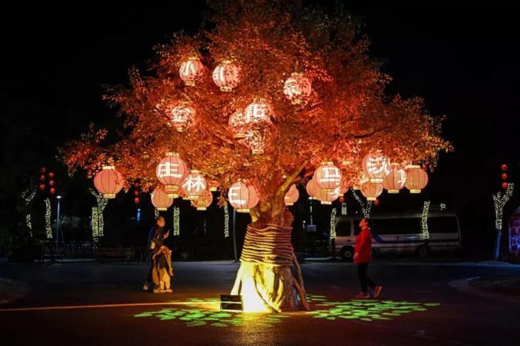 | Des visiteurs admirent un arbre décoré de lanternes traditionnelles à l'approche du Nouvel An lunaire du Serpent, le 21 janvier à Fuzhou, dans la province chinoise du Fujian. |