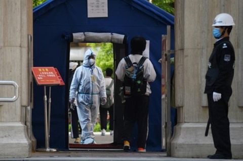 | Des élèves font leur rentrée scolaire le 27 avril à Shanghai, en Chine. |