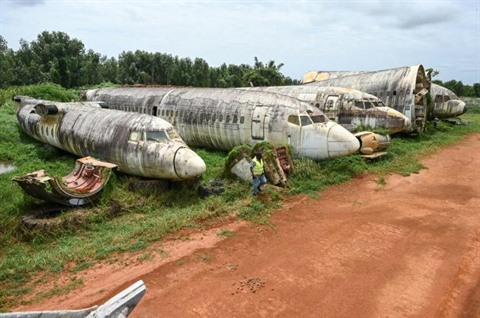 | Des épaves d'avions, le 15 avril à Songon Dagbe, dans la région de Jacqueville, en Côte d'Ivoire. |