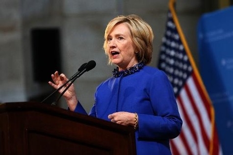 | Hillary Clinton lors d'un discours à l'Université de Columbia le 29 avril 2015. |
