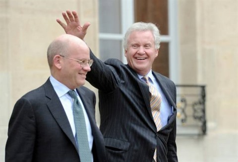 | John Flannery , PDG de GE, et son prédécesseur, Jeffrey Immelt le 28 mai 2014 à l'Élysée. |