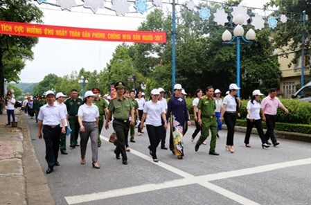 | Les habitants de la province de Lào Cai ont défilé le 30 juillet pour lutter contre le trafic d'êtres humains. |