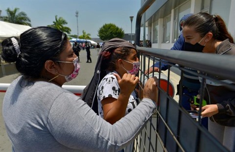 | Des proches de détenus de la prison de Guayaquil attendent devant la morgue le 1er octobre. |