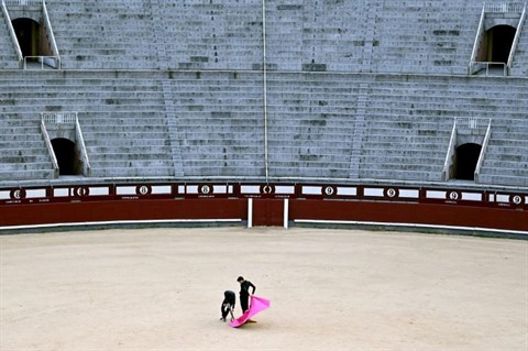 | Un apprenti torero s'entraîne dans les arènes vides de Las Ventas, le 4 février à Madrid. |