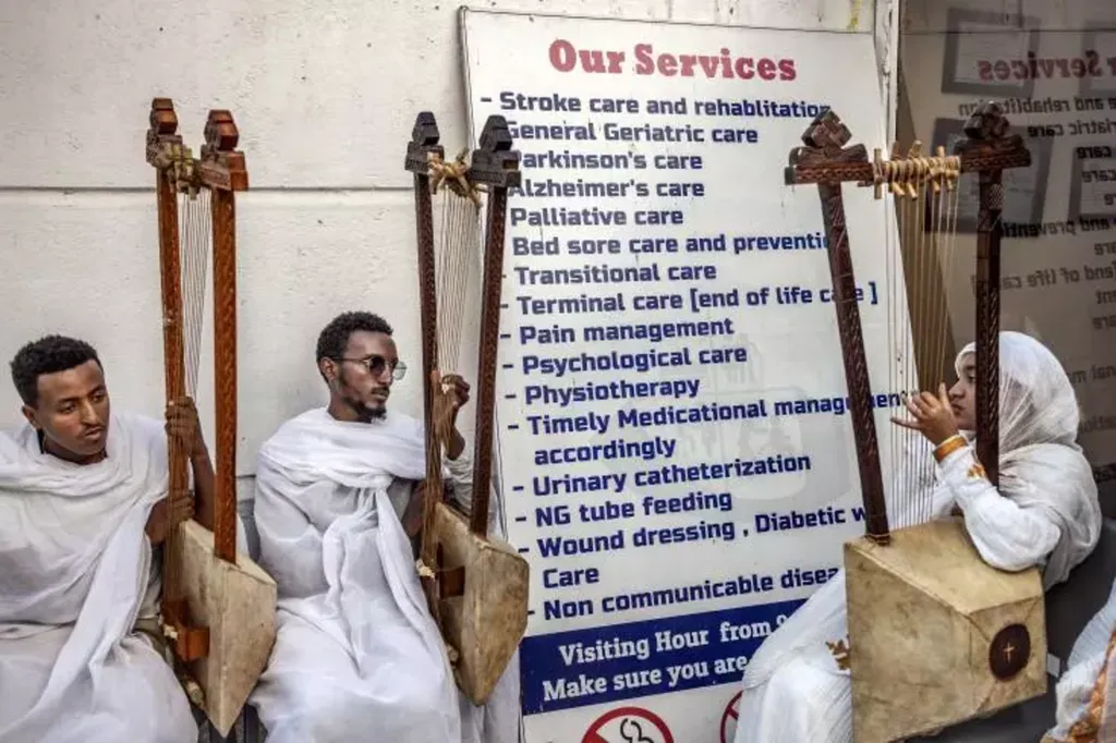 Depuis trois ans, chaque vendredi, les musiciens se rendent dans une maison de retraite de la capitale Addis Abeba pour jouer de cet instrument, considéré comme l'un des plus anciens d'Éthiopie et qui apaiserait les tourments.
