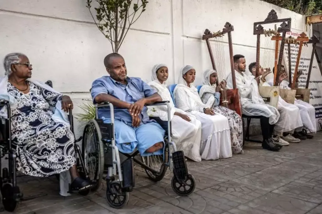Assis dans un fauteuil roulant, Solomon Daniel Yohanes secoue légèrement la tête au rythme de la musique. "Le begena touche quelque chose à l'intérieur de vous", raconte l'homme de 60 ans, pensionnaire depuis deux ans, amputé en dessous des genoux.
