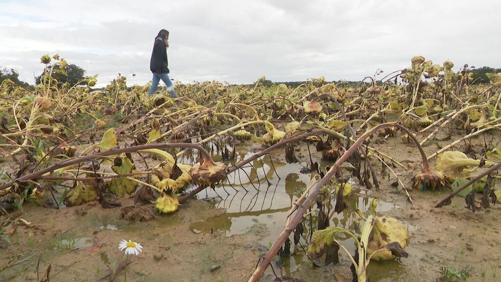 | Un champs de tournesol dans l'Indre, impacté par la pluviométrie. |