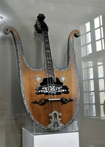 Dans cette exposition permanente sont en majorité présentés des instruments européens fabriqués avant 1800, en parfaite harmonie avec le cadre du palais. Ce rare ensemble de guitares baroques, de luths, de violes, de harpes, tous en état de fonctionnement, est souvent utilisé en concert dans le salon du palais.