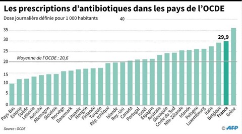 "En France, l'utilisation des antibiotiques est supérieure de près de 50% à la moyenne des pays de l'OCDE", écrit l'organisation.
