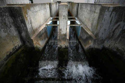 | Eaux traitées par la station de Narbonne, dans le Sud de la France, le 18 août. |
