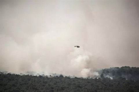 | Hélicoptère en intervention au dessus de la forêt en feu, à la Teste-de-Buch, en Gironde le 14 juillet |