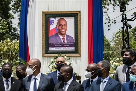 | Cérémonie en hommage au président défunt Jovenel Moïse, à Port-au-Prince, en Haïti, le 20 juillet 2021. |