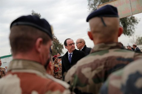 Outre les 14 avions de chasse Rafale basés en Jordanie et aux Émirats arabes unis, environ 500 soldats français assurent des missions de conseil, de formation et d'appui d'artillerie en Irak aux forces engagées pour reprendre aux jihadistes la ville de Mossoul (Nord). Ils ne participent toutefois pas directement aux combats au sol.