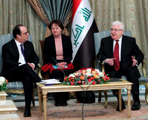 À Bagdad, le président français s'entretiendra avec les trois composantes du pouvoir irakien : le président kurde de la République Fouad Massoum, le Premier ministre chiite Haider al-Abadi et le président sunnite du Parlement Salim Al-Joubouri. Sa visite est placée sous haute sécurité deux jours après un attentat revendiqué par l'EI qui a fait près de 30 morts sur un marché de Bagdad.