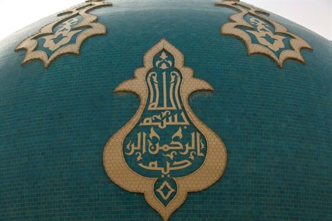 | Des versets du Coran inscrits en écriture koufique sur le dôme de la grande mosquée Moussaoui à Bassora, dans le Sud de l'Irak, le 21 décembre. |