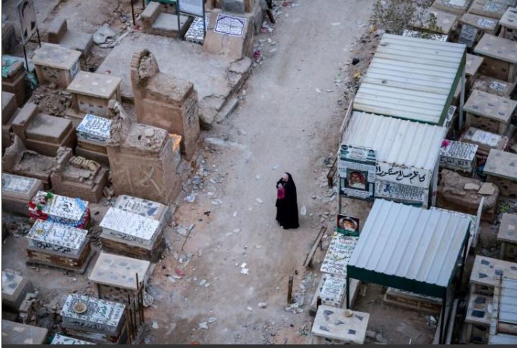 | Une femme dans le cimetière de Wadi al-Salam, le 10 février à Najaf, en Irak. |