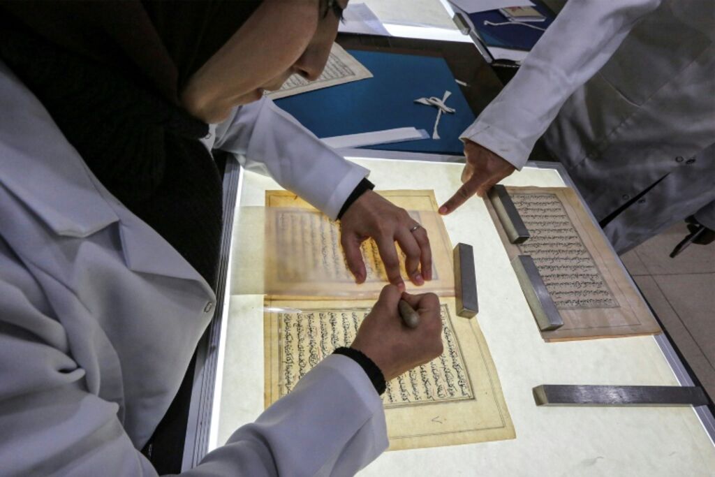 Épaulée par des expertises européennes, la Maison des manuscrits poursuit une double mission : numériser l'intégralité de sa collection, mais aussi restaurer ouvrages, parchemins et planches de calligraphie endommagés par l'humidité, des insectes, ou tout simplement l'usage humain au fil des siècles.