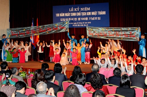 | Cérémonie de célébration du centenaire du président Kim Il-sung tenue le 22 février à Hanoi. |