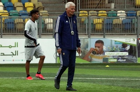 | L'entraîneur de la Libye, Zoran Filipovic, dirige une séance d'entraînement au stade des Martyrs à Benghazi, le 18 mars, à trois jours du match contre la Tunisie. |