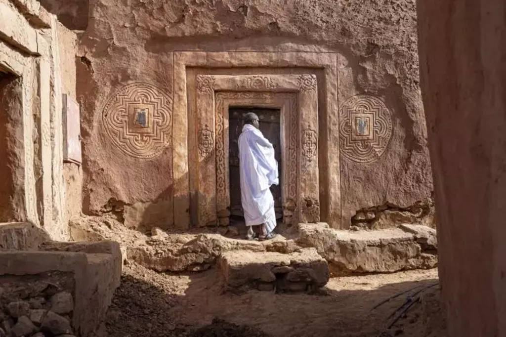 | Mohamed Ben Baty entre dans sa maison, le 4 avril, dans la ville médiévale de Oualata, en Mauritanie. |