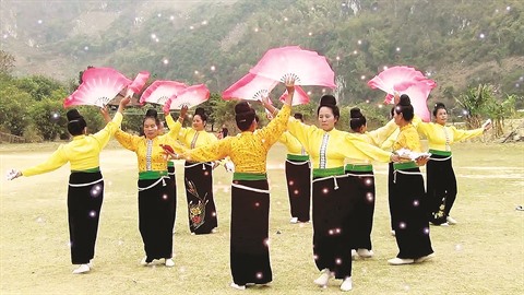 | Une danse de l’ethnie Thái à Muong Lò. |