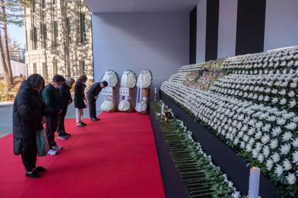 Des lieux de commémoration ont été érigés dans le pays, dont à Séoul. A l'aéroport de Muan, des familles étaient rassemblées mardi pour la construction d'un nouvel autel, ceint de fleurs blanches et noires.