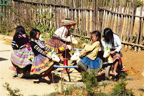 Nous prenons une pause sur la place devant l’école primaire de Mù Cao. Les enfants autochtones, curieux de voir des «étrangers», nous approchent sans méfiance. Leurs visages s’illuminent quand nous leur parlons, leurs yeux luisant de joie. J’imagine combien ils sont heureux de recevoir des invités chez eux, tout comme moi quand je n’étais qu’un petit enfant. Dans ce village reculé, ce n’est pas tous les jours qu’ils rencontrent des gens venus de loin, qui franchissent des kilomètres de route accidentée pour leur rendre visite. C’est pourquoi on passe le reste de l’après-midi à Mù Cao rien que pour s’amuser avec eux. Leur enjouement, pur comme la nature, nous rapproche rapidement.