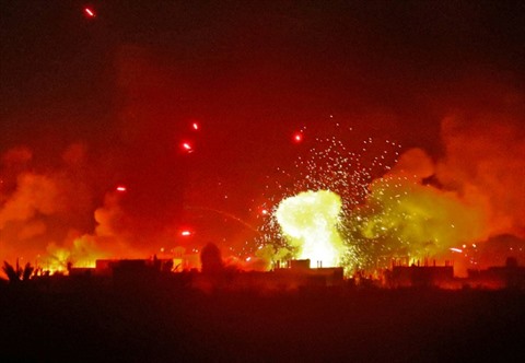 | Bombardement de la coalition internationale emmenée par les États-Unis sur le dernier réduit à Baghouz (Syrie) du groupe État islamique, le 11 mars. |