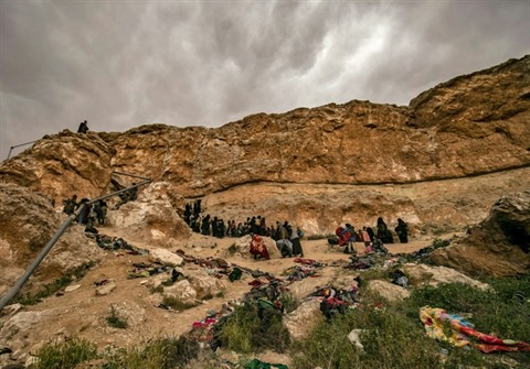 À leur arrivée en haut de la falaise, ils seront interrogés et fouillés par les FDS qui détiendront les hommes soupçonnés d'appartenance à l'EI alors que les femmes et les enfants iront s'entasser dans des camps de déplacés surpeuplés plus au nord après de longs trajets en camions.