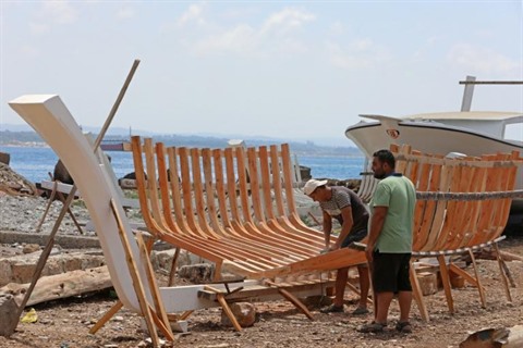 Le Syrien Khaled Bahlawan construit à la main un bateau en bois au bord de l'île d'Arwad, dans l'Ouest de la Syrie, un artisanat que sa famille veut préserver, le 24 juillet. Photo : AFP/VNA/CVN |
