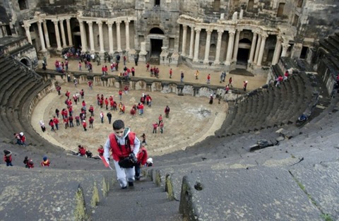 De jeunes Syriens visitent le théâtre romain de Bosra, dans le Sud du pays, lors d'une visite organisée sous le patronage du ministère du Tourisme, dans ce pays ravagé par une guerre qui dure depuis plus de sept ans. Photo: AFP/VNA/CVN |