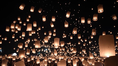 Des milliers de lanternes ont été lancées dans le ciel de Chiang Mai lundi soir 14 novembre, par des moines bouddhistes, des fidèles et des touristes.