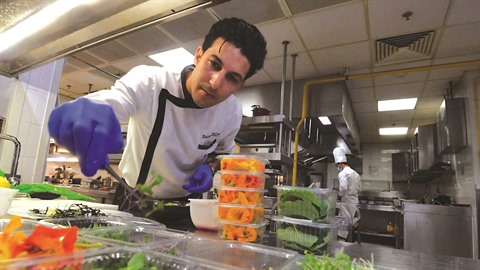 | Le chef tunisien Bassem Bizid utilise des fleurs comestibles pour préparer ses plats dans un hôtel de luxe à Gammarth, une banlieue haut de gamme du nord de la capitale Tunis. |