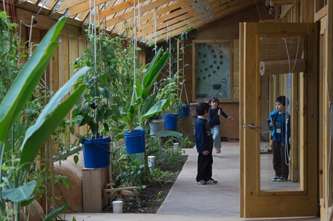 Inaugurée en mars et accueillant des enfants de 3 à 12 ans, elle est la première école d’Amérique latine entièrement durable et dès l’extérieur, cela se voit : des pneus colorés agrémentent l’entrée, des panneaux solaires recouvrent ses toits, de grandes verrières donnent sur des potagers...