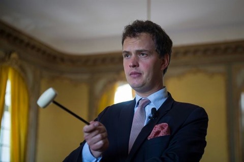| Le commissaire-priseur Aymeric Rouillac au château d'Artigny. |