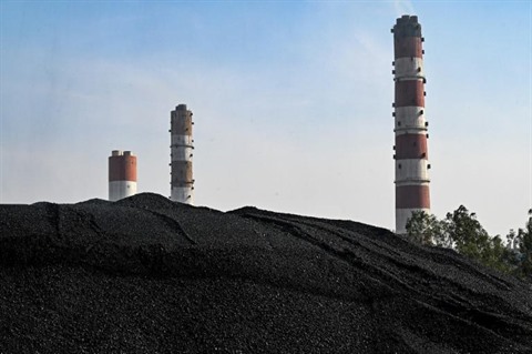 | Des terrils de charbon aux abords de la centrale de la National Thermal Power Corporation (NTPC) à Dadri, le 6 avril en Inde |