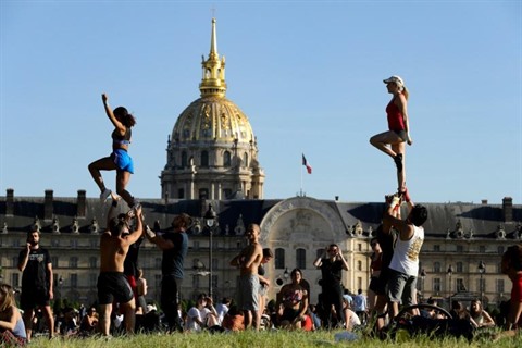 | De l'acrobatie sur l'esplanade des Invalides à Paris, le 28 mai. |