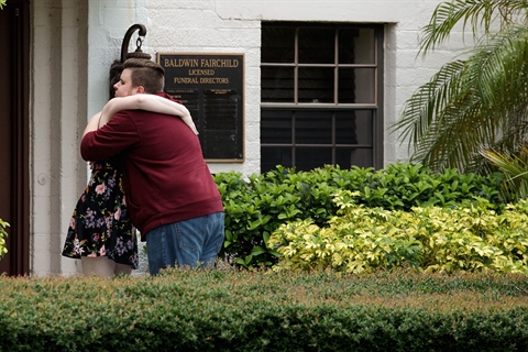 | Des personnes lors des obsèques de victimes de la tuerie d'Orlando, le 17 juin. |
