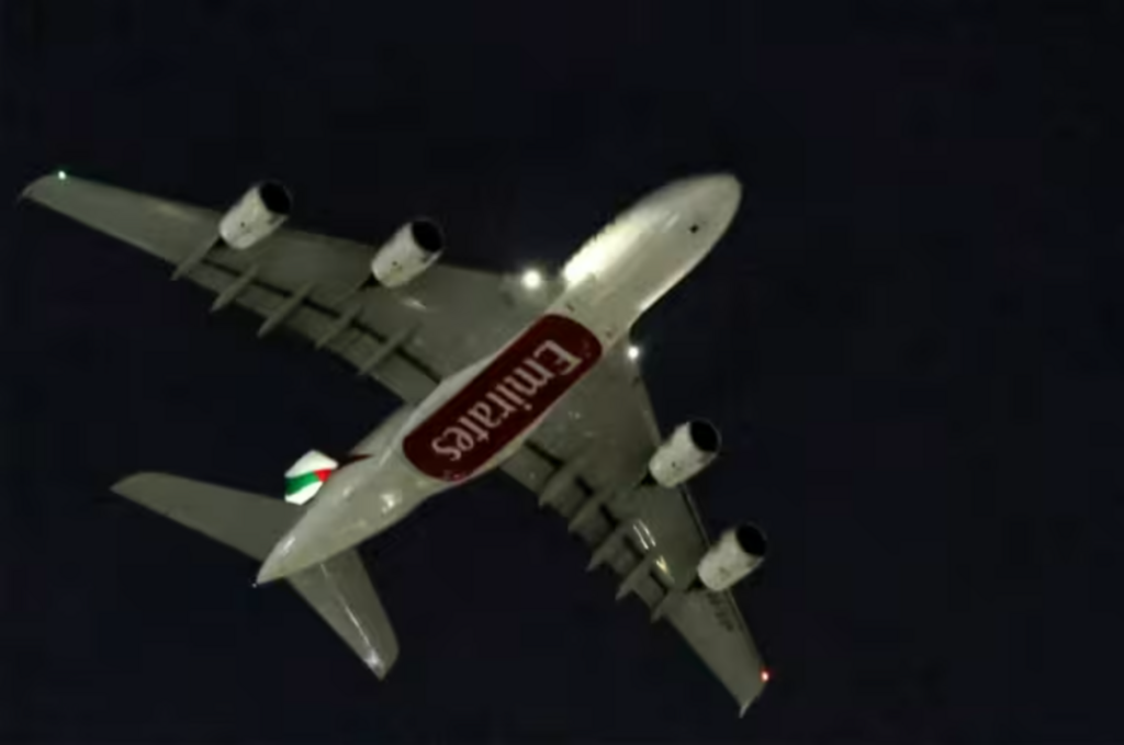 | Un Airbus A380 d'Emirates décolle de l'aéroport international de Dubaï, le 2 mars aux Émirats arabes unis. |