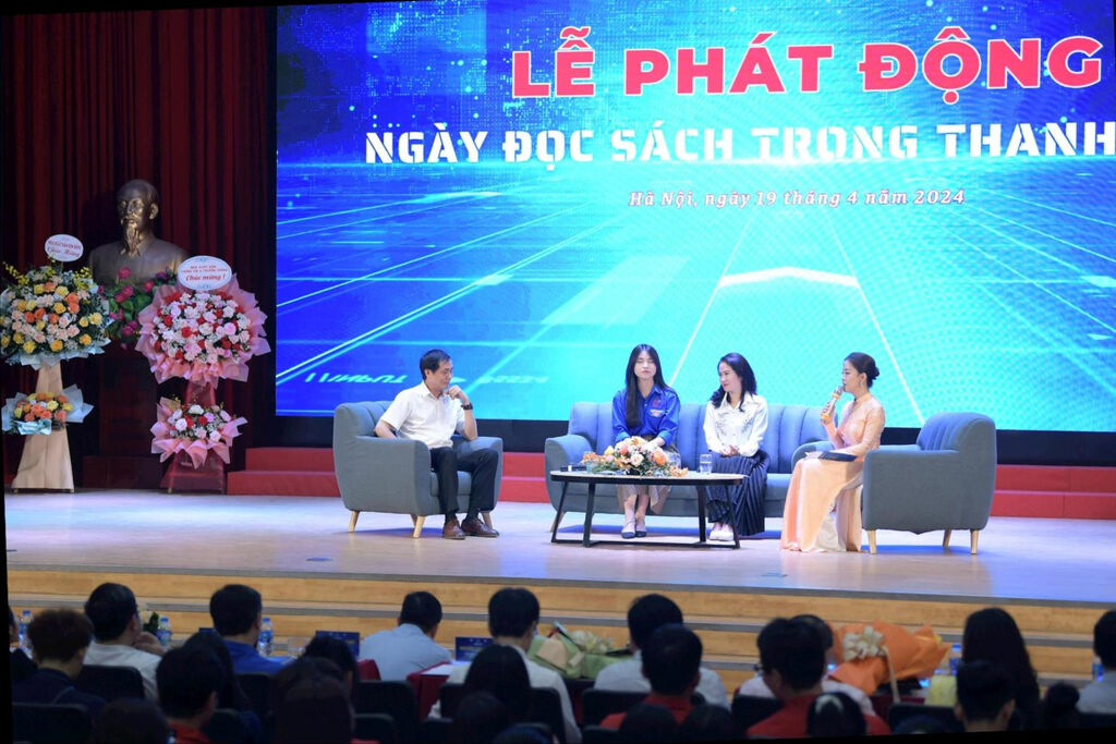 | Cérémonie de lancement de la Journée de la lecture parmi les jeunes, organisée le 19 avril à l'Institut de technologies des postes et des télécommunications, à Hanoï. |