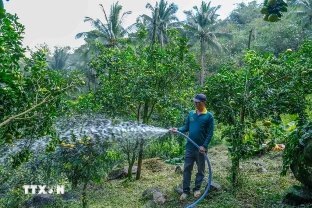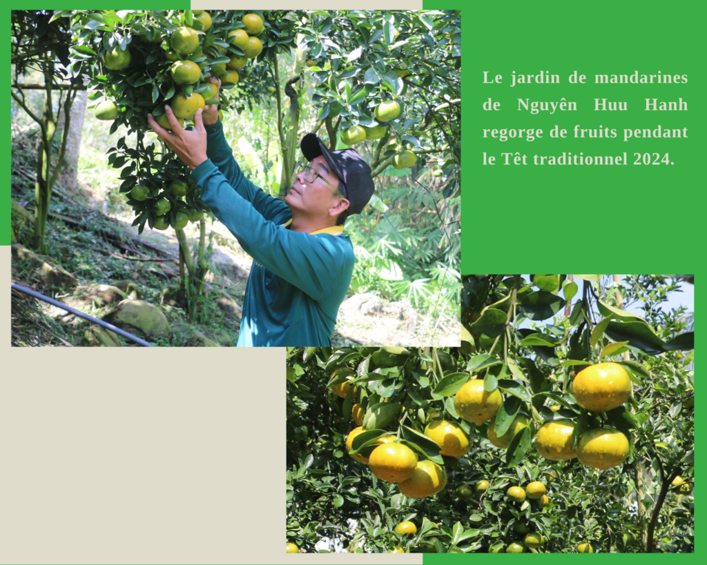 À proximité, Nguyên Huu Hanh (45 ans), secrétaire de la cellule du Parti, chef du hameau de Vô Ba, possède plus de 5.000 m2 de mandariniers situés près du sommet de la montagne. Il y a près de 10 ans, avec le soutien du ministère de l'Agriculture et du Centre de développement de l'innovation verte (GreenID), il a investi pour installer des batteries solaires dans sa maison au pied de la montagne et dans son verger.